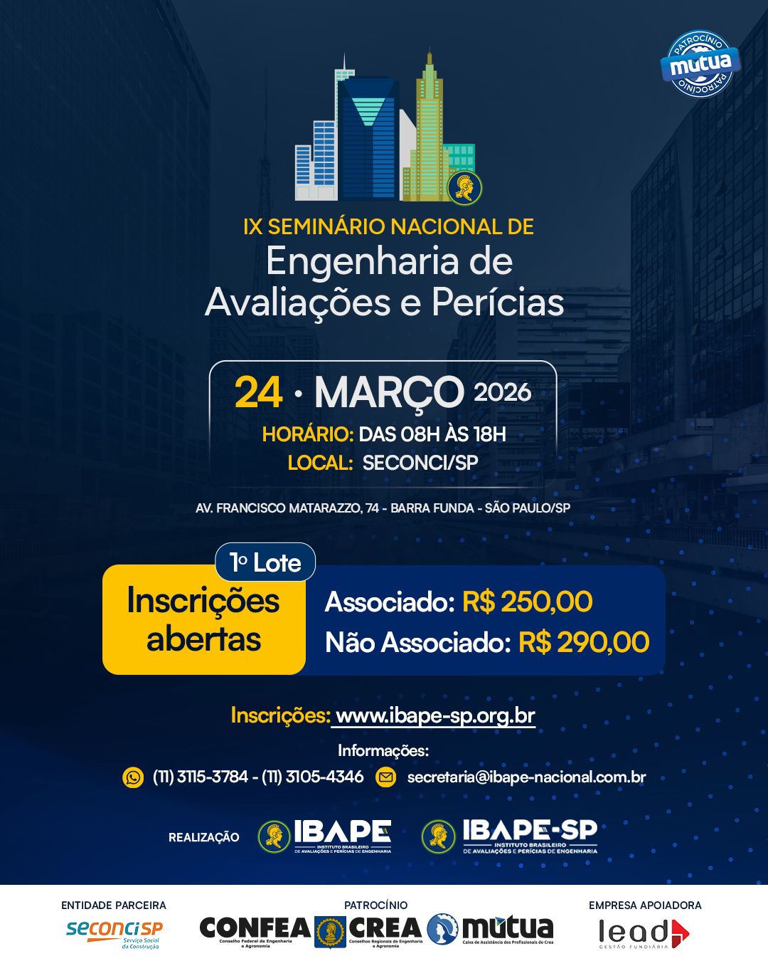 Inscrições Abertas para o IX Seminário Nacional de Engenharia de Avaliações e Perícias
