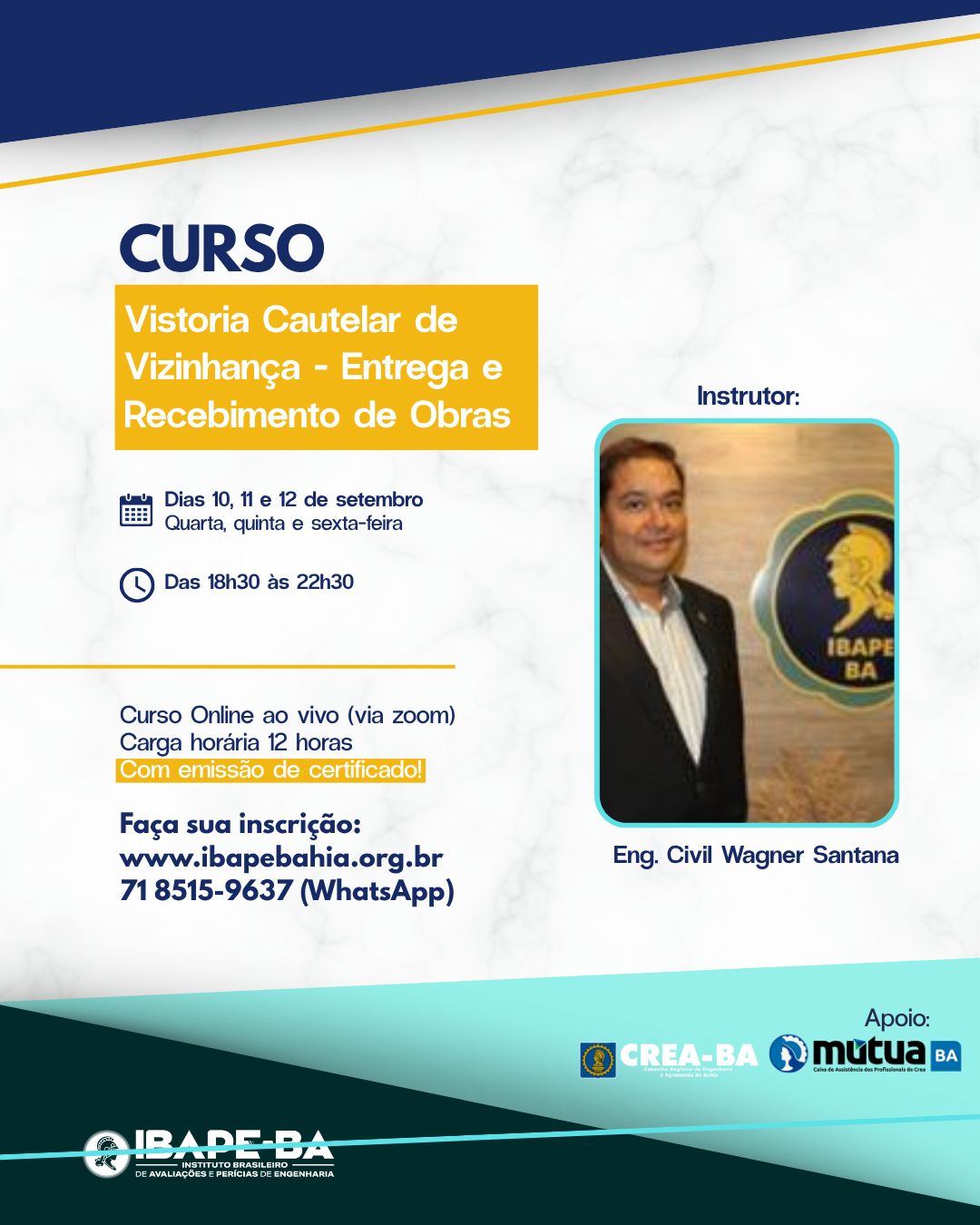 Curso Online – Vistoria Cautelar de Vizinhança e Entrega/Recebimento de Obras