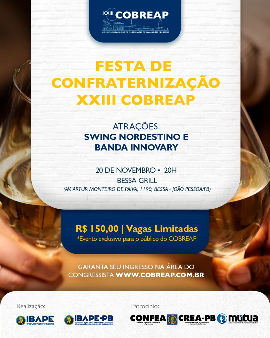 Garanta seu ingresso para a Festa de Confraternização do XXIII COBREAP!